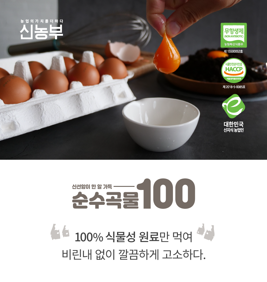 [신농부] 안전한 먹거리 무항생제 순수곡물100 안심계란 40구(난각2번)
